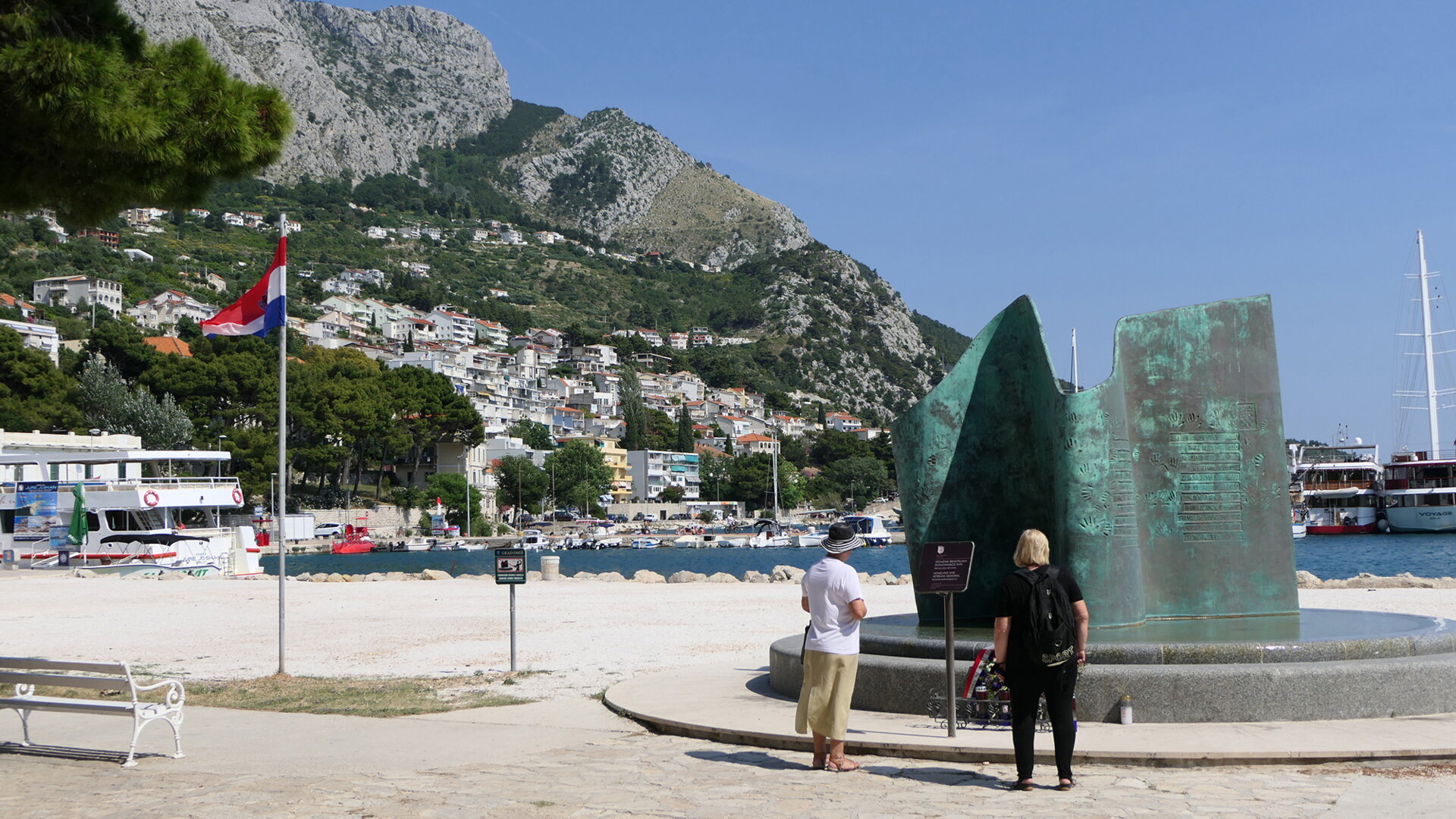 Brončani spomenik postavljen je na predjelu Toreta, uz samu obalu. Ima oblik lepršave zastave s otiscima dlanova članova obitelji poginulih, koji simbolično označavaju neprekinutu povezanost živih s onima koji su živote dali kako bi Hrvatska bila suverena država. Zastava na simboličan način prikazuje i vizure Omiša jer u tlocrtu izgleda kao tok rijeke, a gledana frontalno podsjeća na brda koja okružuju Omiš.