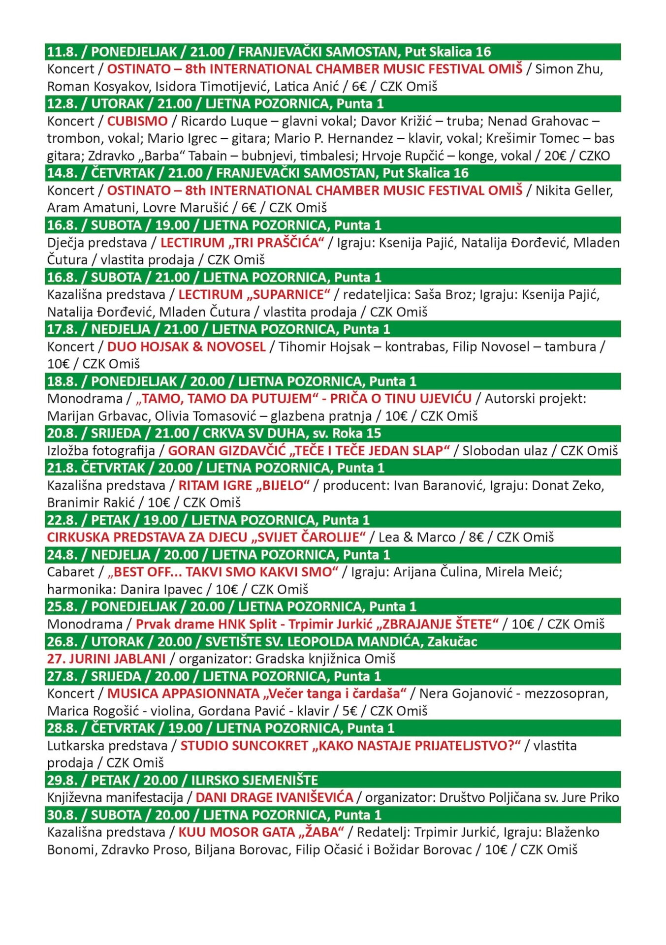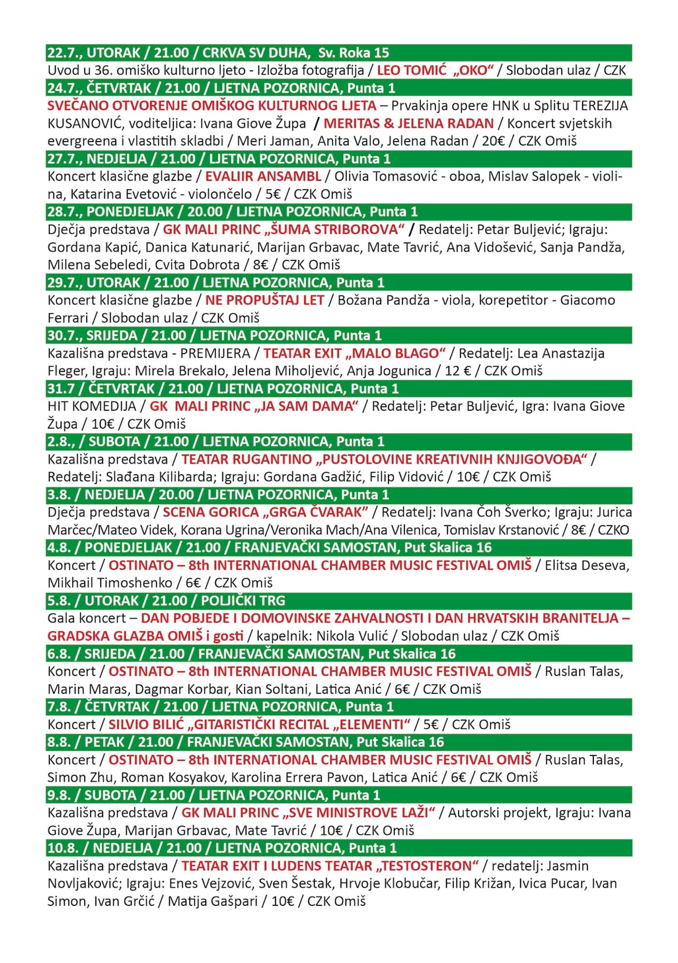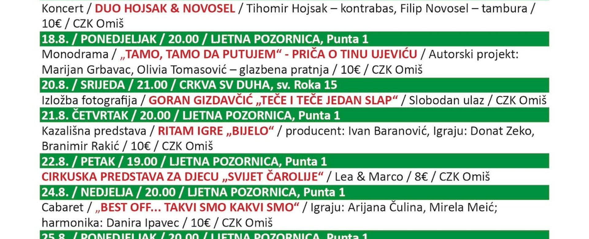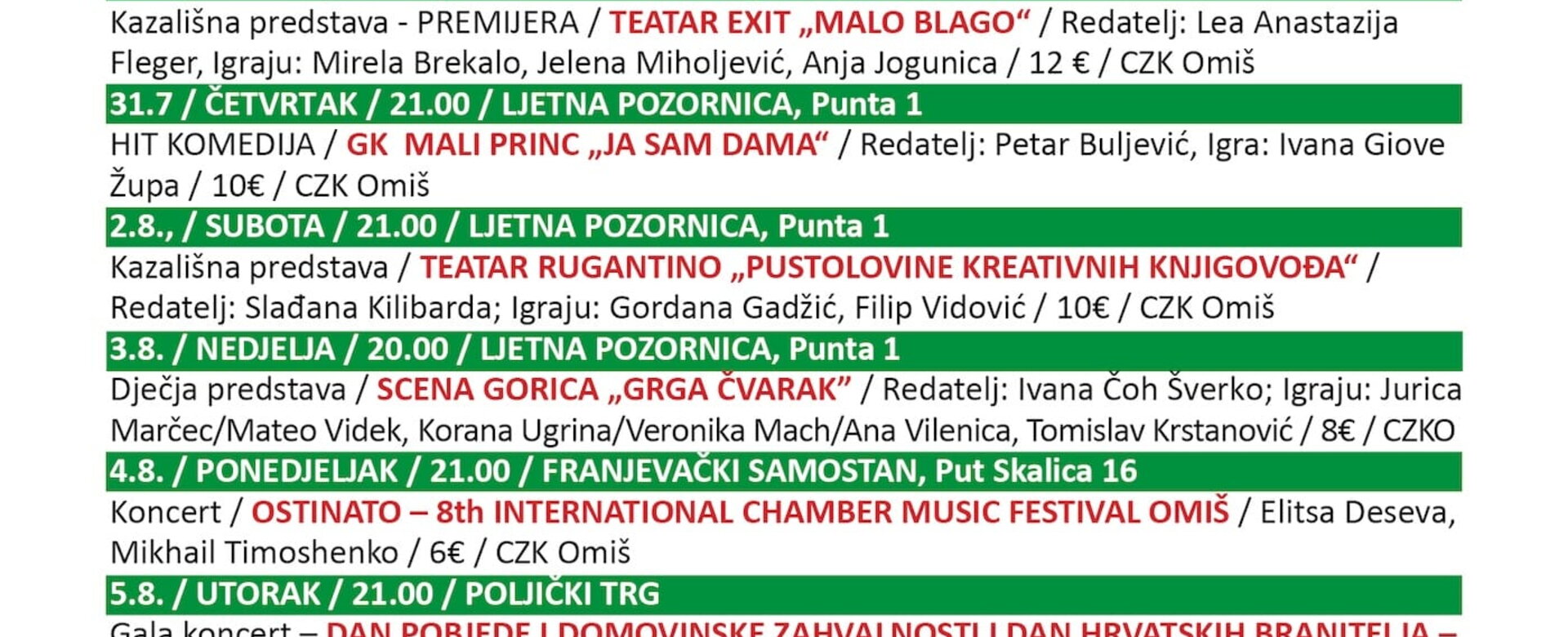 OMIŠKO KULTURNO LJETO - program