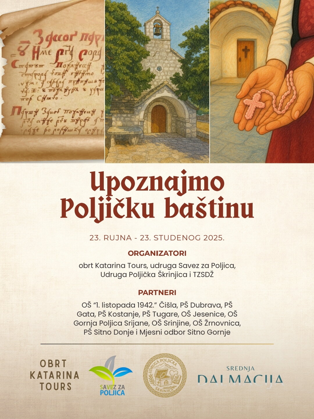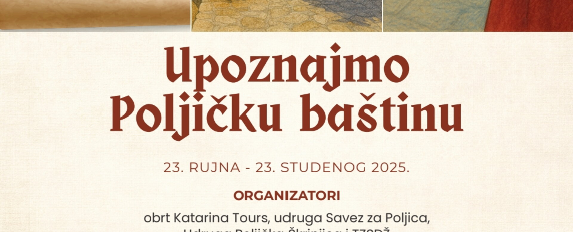 "Poznajmo poljičku baštinu" je program očuvanja kulturno-sakralne baštine i načela Poljičke kneževine koji se realizira kroz edukativna i stručna vođenja, interpretaciju poljičke baštine i radionice, od 23. rujna do 23. studenog 2025. na području Poljičke kneževine.